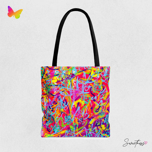 Abstract Grunge Tote Bag: Vibrant Geometric Rave Accessory